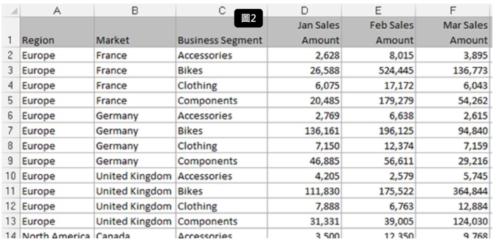 資料表達格式(圖1)這是大家最熟悉的樣子。分類清楚、容易閱讀,也符合我們直覺上記錄資料的方式。但它有個致命缺點——彈性極低。假設今天要把報表的層級從區域 → 產品改成產品 → 區域,那你可能要重新排列整份資料,甚至重做一張表。